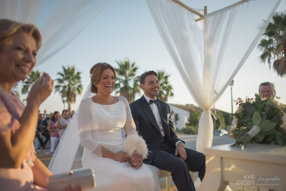 "Risas , abrazos, lagrimas de felicidad y como no, algunos nervios antes de la ceremonia donde todos los detalles estuvieron cuidados con mucho cariño y muy buen gusto. Pudimos escuchar las palabras que familiares y amigos dedicaron con tanto amor a los novios. Manuela en su cochecito tan guapísima para entregar a sus titos las alianzas con las que se casaron. Dejó a todo el mundo sin palabras. De la celebración destacar el baile tan emotivo en el que pudimos sentir todo el amor que Antonio y Carmen se tienen, y mención a parte el lanzamiento de ramo. ¡Solo puede quedar una!"